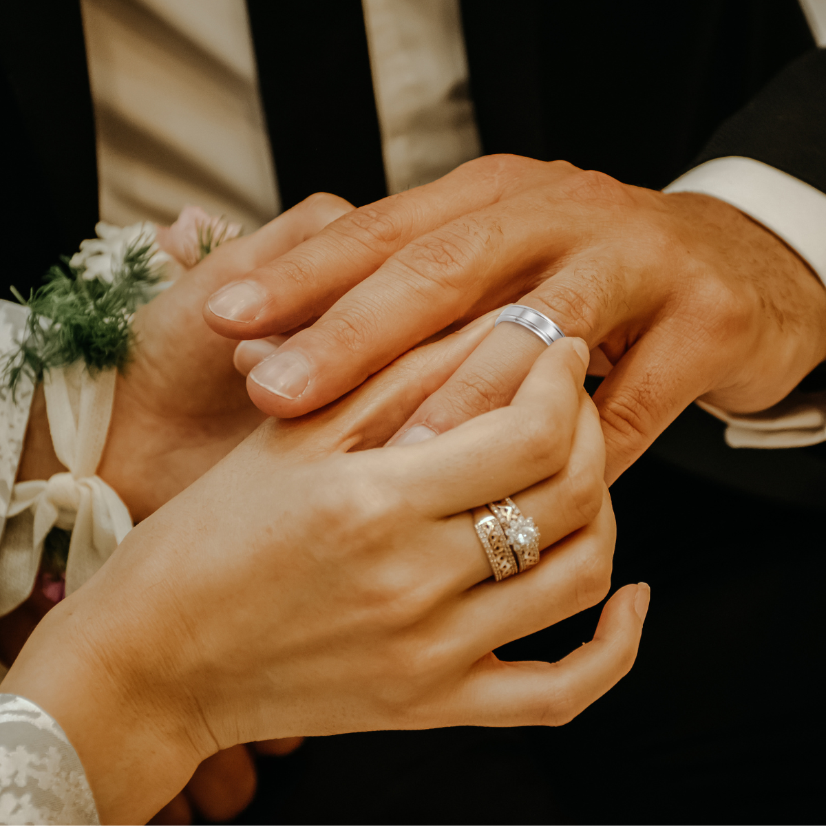 Mens CZ Stone Titanium Band Ring Etched I love You