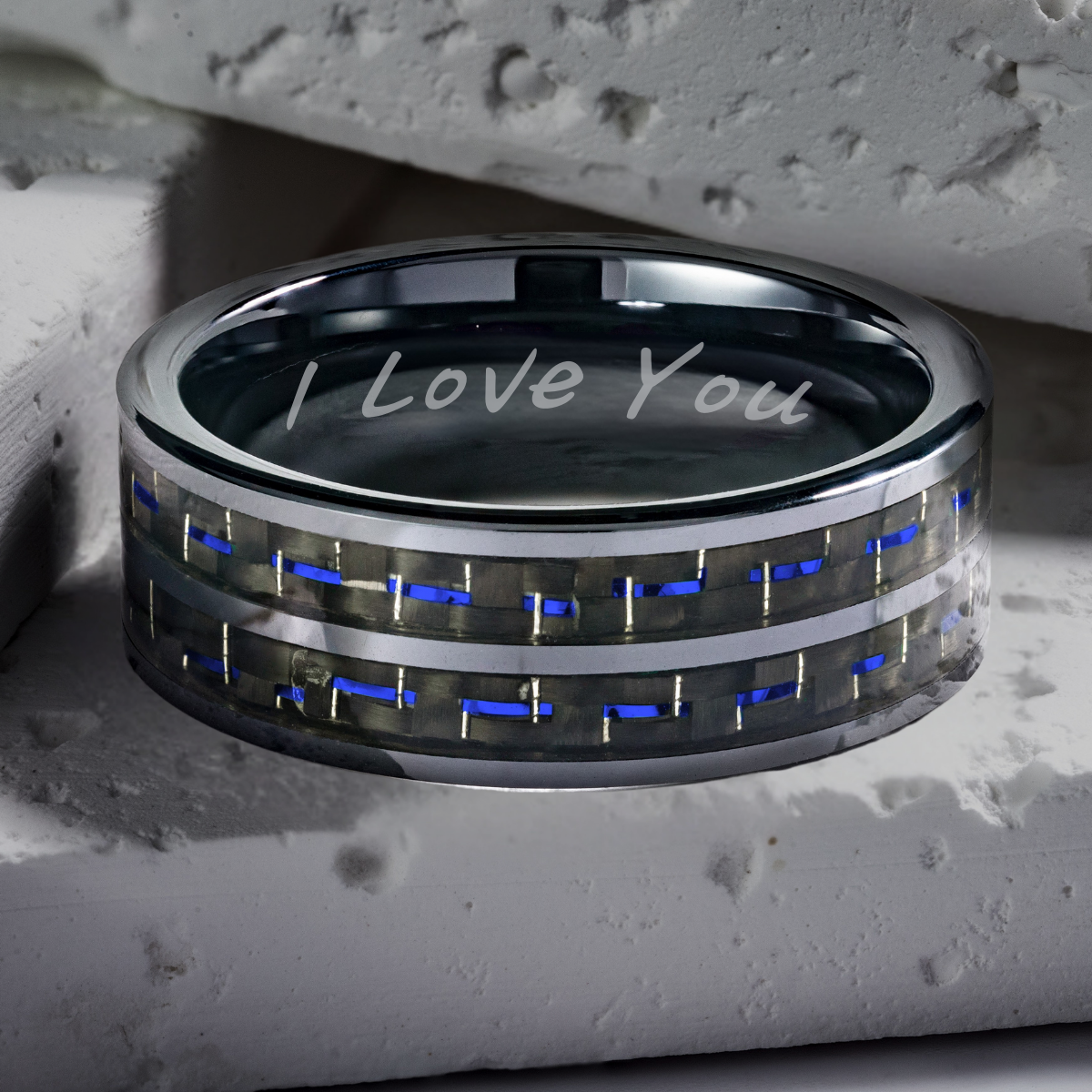 Mens Titanium Ring Stone Etched I Love You 7mm