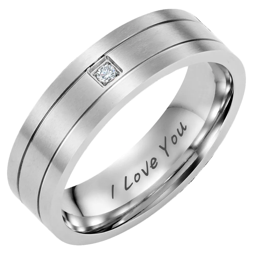 Mens Titanium Ring Stone Etched I Love You 7mm