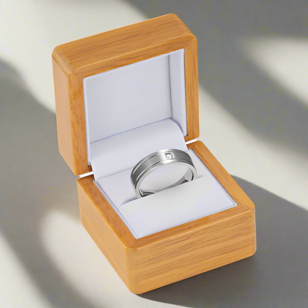 • Wooden Ring Box Included