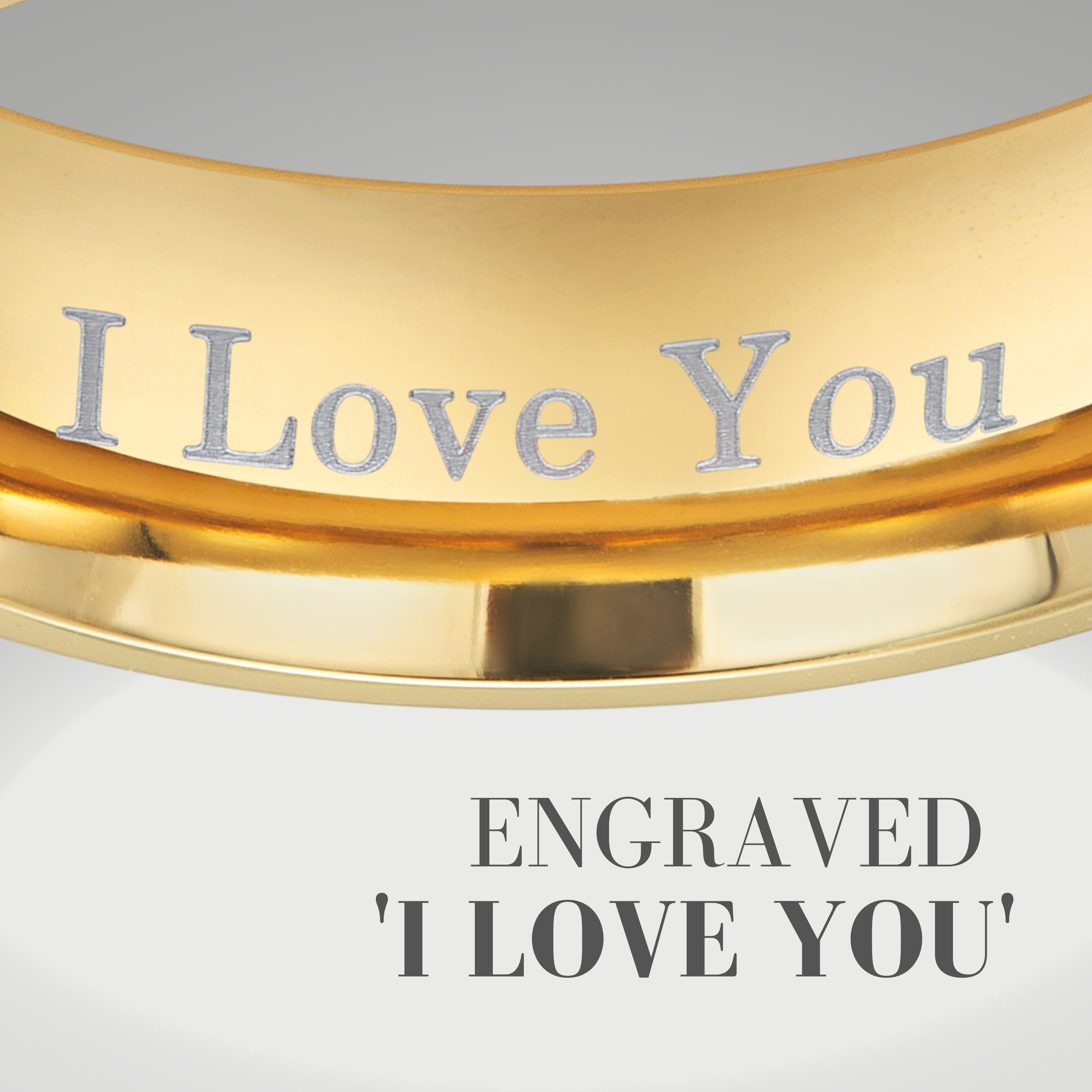 Home › Willis Judd Titanium Mens Gold Ring CZ Engraved I Love You in Wooden Gift Box 7mm